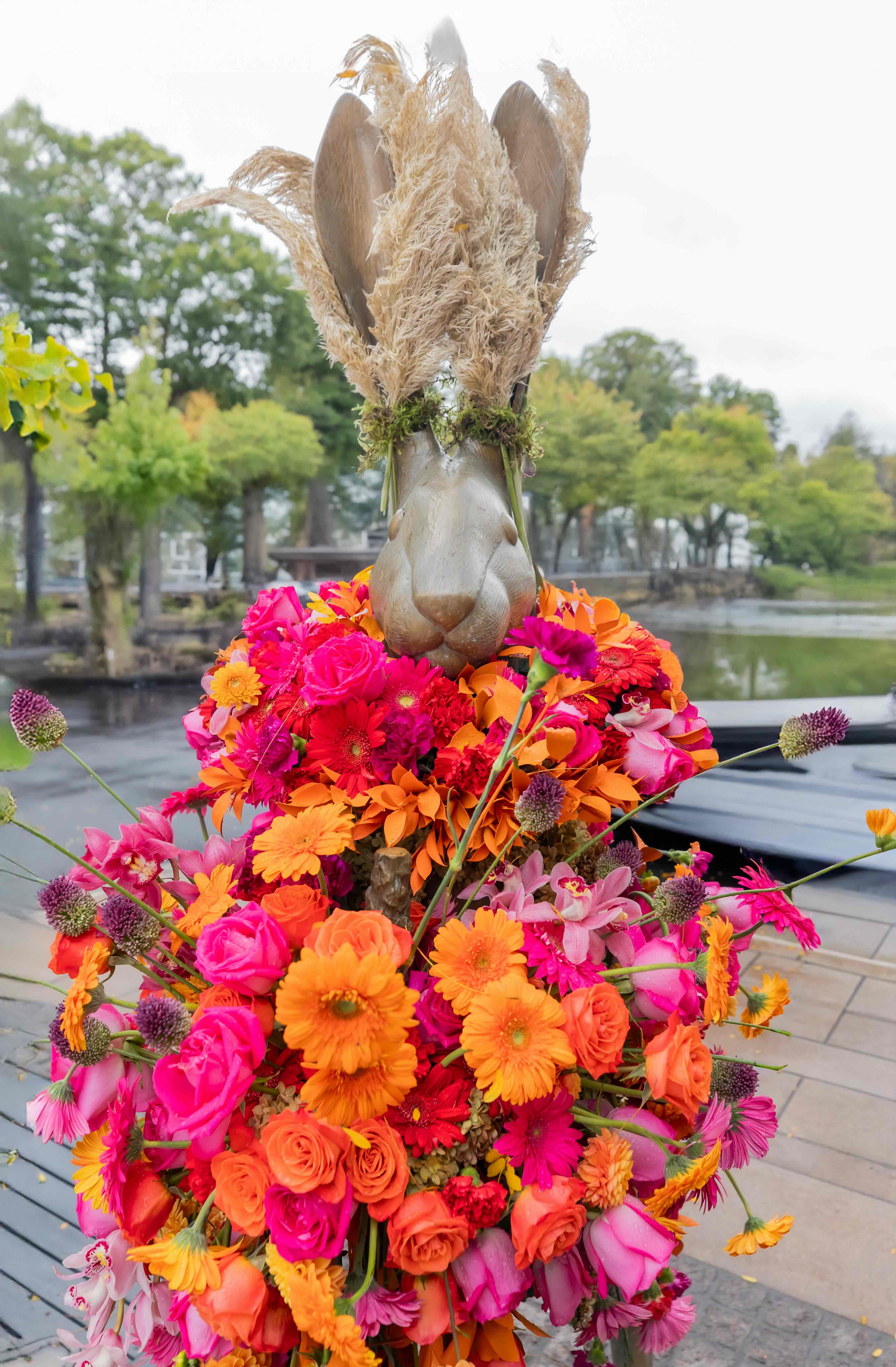 Rabbit Sculpture en Fleurs created by Glen Head Flower Shop