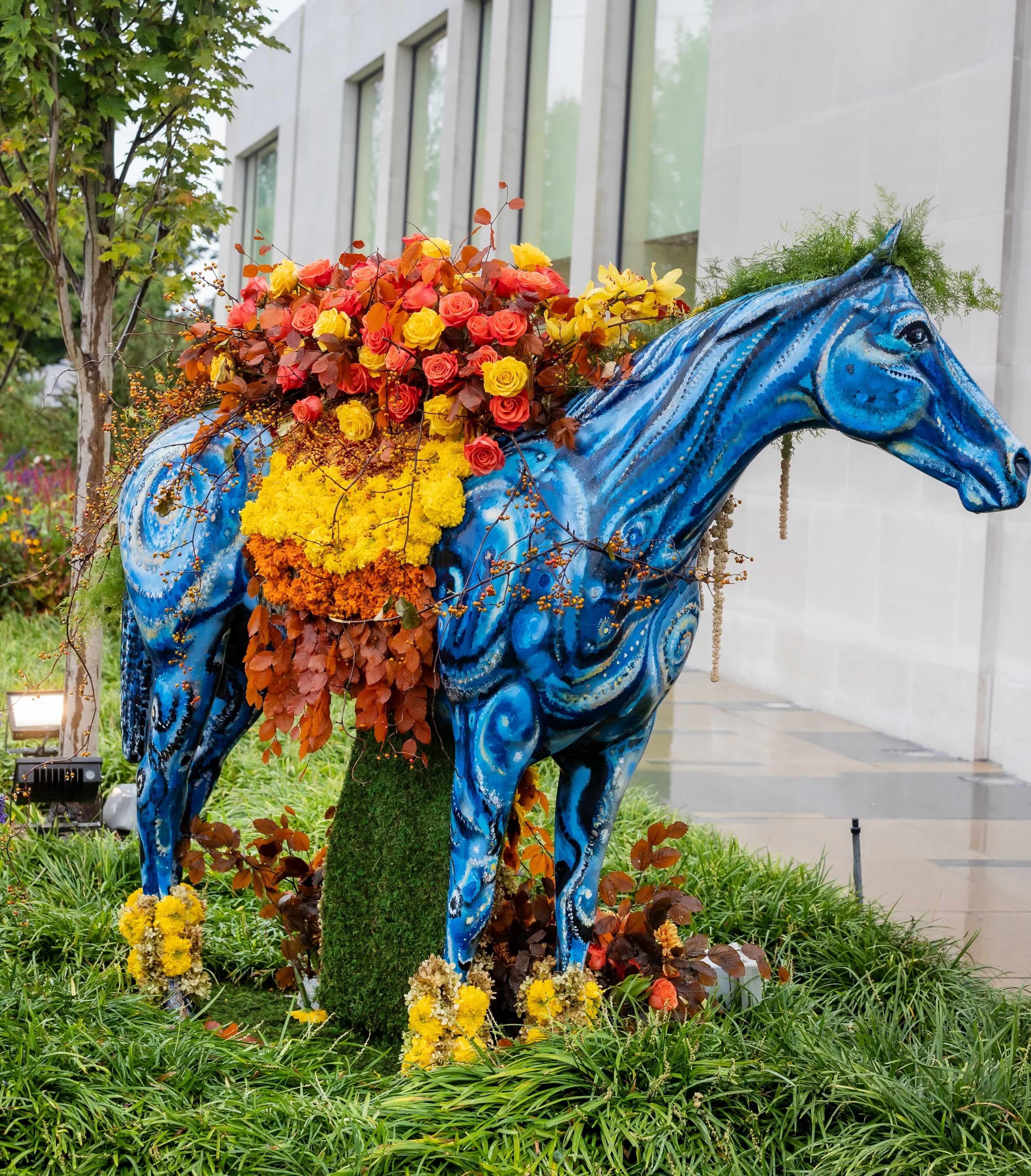 Horse Sculpture en Fleurs created by Glen Head Flower Shop